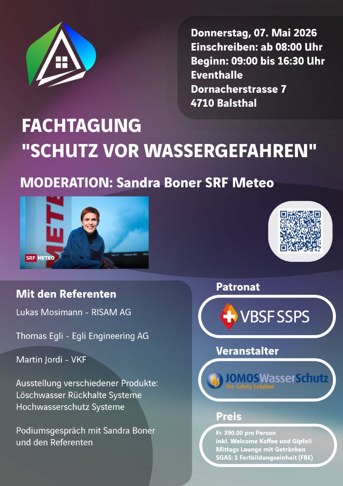 Die JOMOS WasserSchutz führt am Donnerstag 07. Mai 2026 in der Eventhalle Balsthal die Fachtagung „Schutz vor Wassergefahren“ durch.
